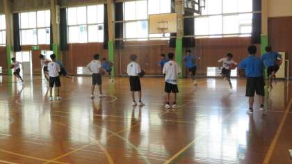 8月23日(火)の部活動・その1 公開日 2022/08/23 更新日 2022/08/23 部活動 8月23日(火) 9:00 第1体育館では、男女バスケットボール部が練習を始めました。 (写真 上、中:男子 下:女子) 体育館はすでに蒸し暑いですが、元気にアップしています。