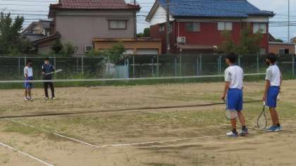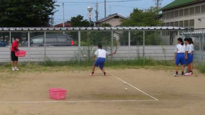 ソフトテニス部は、黙々と練習を積み重ねています。