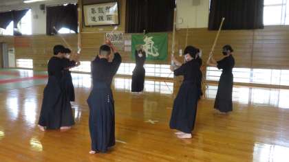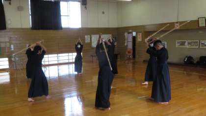 8月23日(火) 10:00 剣道部は、トレーニングを終え、素振りが始まりました。