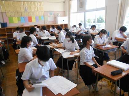 次に、25日の「第2回 実力テスト」の返却があり、友達と間違えたところの見直しを早速しいました。(写真:下)