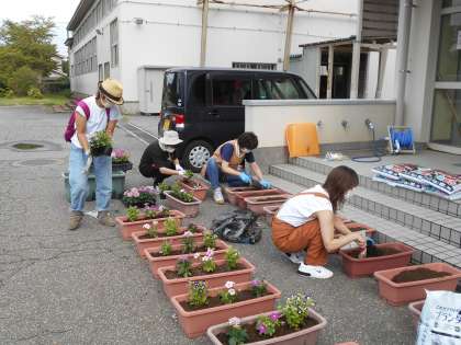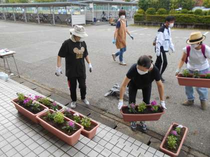 PTA・お花ボランティア 公開日 2022/09/03 更新日 2022/09/03 PTA 9月3日(土) 8:30 朝からPTA会長さんとPTA3学年委員会のみなさんが、お花ボランティアのため、プランターにお花を植えてくださいました。(写真:上、中) 生徒玄関前がパッと明るくなりました。(写真:下) ありがとうございました!