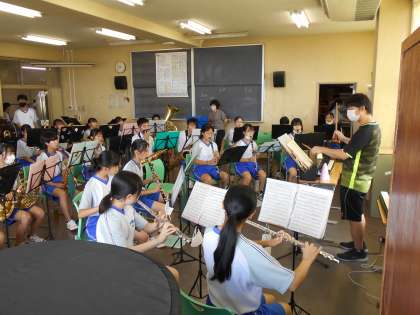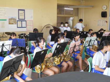 9月3日(土)の部活動・その4 公開日 2022/09/03 更新日 2022/09/03 部活動 9月3日(土) 9:00 吹奏楽部は、9月19日(月・祝)の演奏会に向けて、ますます練習に気合いが入っています。 顧問の先生の指示をしっかり聞いて、細かいところを合わせています。
