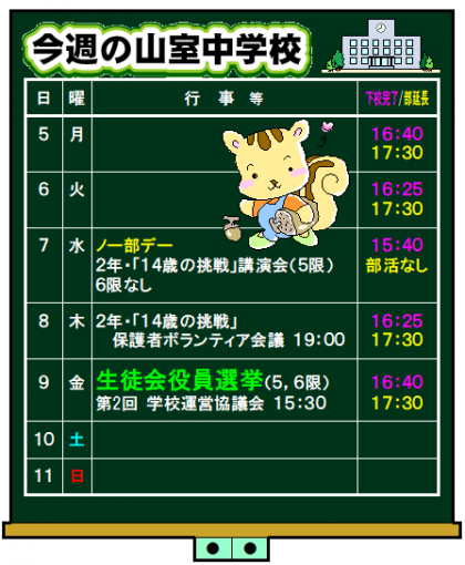 また、今月末に控えた、2年・「社会に学ぶ『14歳の挑戦』」と3年・修学旅行に向けて、着々と準備が進んでいます。