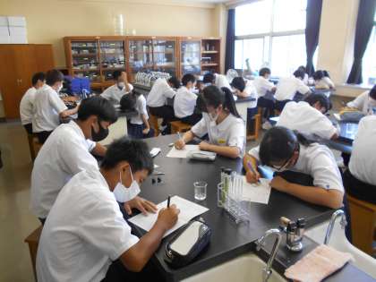 理科では、二酸化炭素と光合成の関係を実験、観察しています。