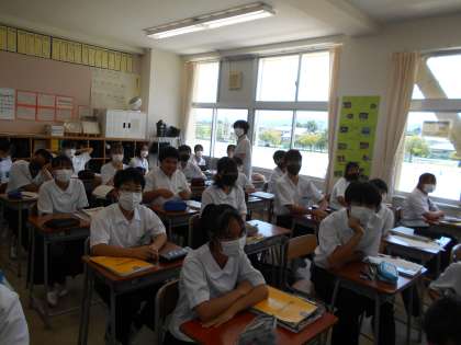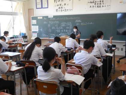 1年・授業風景 公開日 2022/09/05 更新日 2022/09/05 1学年 9月5日(月) 4限 (写真 上:1年1組) 英語では、画面に出てくるフラッシュカードに合わせて、発音をリピートしています。 新出単語、分かるかな? (写真 中:1年3組) 体育では、サッカーをしています。 暑さにも負けず、元気にグラウンドを走っています。 (写真 下:1年4組) 社会では、奈良時代の文化の特徴について話し合っています。