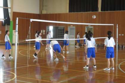 1年・体育・授業風景 公開日 2022/09/08 更新日 2022/09/08 1学年 9月8日(木) 3限 1年1,2組の体育は、男子はグラウンドで長距離走に向けてのペース走をしています。(写真:上) 気温は26度ですが、湿度が高く、ジメジメしています。 女子は、体育館でバレーボールです。 少しずつラリーが続くようになってきました。(写真:中、下)