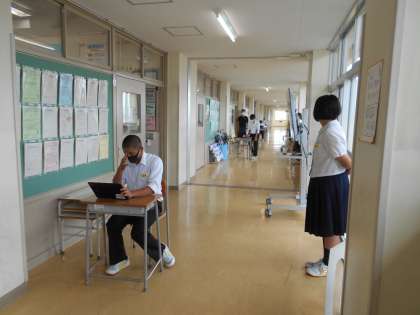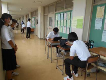 後期生徒会役員選挙・投票 公開日 2022/09/09 更新日 2022/09/09 生徒会活動 9月9日(金) 6限 投票は、クロムブックを使って行いました。 選挙管理委員が見守る中、スムーズに投票を行っています。 (写真 上:1年生 中:2年生 下:3年生) クロムブックの活用法がどんどん広がりますね!