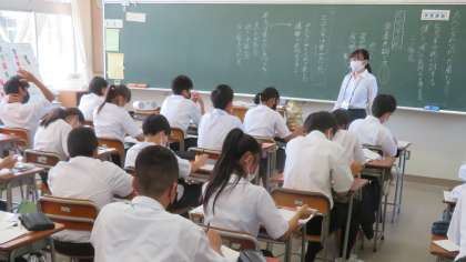 先陣を切って、教育実習生・高森先生が、1年1組で国語の研究授業を行いました。