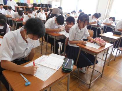 3年・授業風景 公開日 2022/09/13 更新日 2022/09/13 3学年 9月13日(火) 3限 美術では、「空想の世界を広げよう」というテーマで作品作りをしています。 (写真 上:3年1組) 数学では、問題演習中です。2人の先生が机間指導に回っています。 (写真 中:3年2組) 理科では、カラープリントに取り組んでいます。 解説を隅々まで読んでいます。 (写真 下:3年6組)