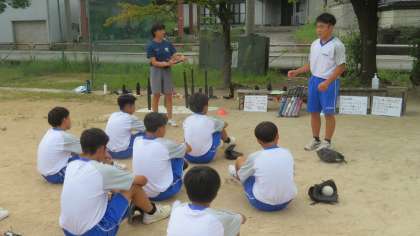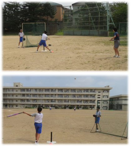 教育実習生・研究授業 公開日 2022/09/15 更新日 2022/09/15 2学年 9月15日(木) 2限 教育実習生の研究授業の締めは、新鞍先生が、グラウンドで、2年3組の体育の研究授業を行いました。 ソフトボールで、「狙った方向にボールを打ち返したり、守備のミスを減らしたりするにはどうしたらよいだろう」という学習課題に取り組みました。 生徒は、ペアでゴロとフライの捕球を行ったり、チームでトスバッティングをしたり、意欲的に活動していました。