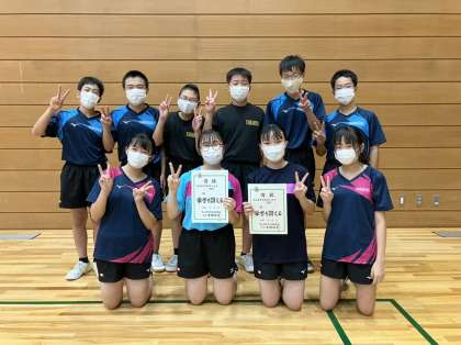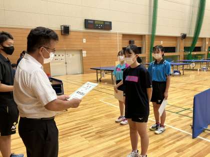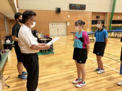 新人大会・1日目・その6 公開日 2022/09/16 更新日 2022/09/16 部活動 9月16日(金) 14:00 卓球競技は個人戦が行われ、男女共に全員がベストを尽くしました。 女子個人では同校対決を経て、見事1位と3位という華々しい結果を残すことができました。 明日は団体戦です。 引き続き全力で臨みます。 応援よろしくお願いします。