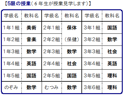 5限の授業を小学校6年生のみなさんに見学してもらいます。