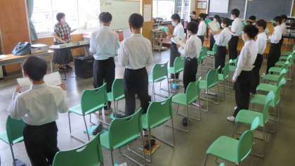 1年・音楽・合唱練習 公開日 2022/09/26 更新日 2022/09/26 1学年 9月26日(月) 1限 1年5組の音楽は、パートごとに分かれて、合唱練習です。 合唱コンクールまで、1か月を切りました。 少しずつエンジンをかけないと……!