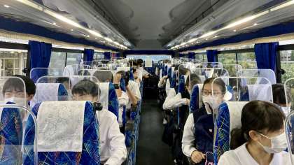 3年・修学旅行・1日目・その5 公開日 2022/09/27 更新日 2022/09/27 3学年 9月27日(火) 6:40 早速、バス内のようすが送られてきました。 (写真:2号車のバス内のようす) 朝早かったので、静かなスタートですね! PS 今回の修学旅行のホームページは、撮った写真のデータを学校に送ってもらい、学校で編集してアップしています!