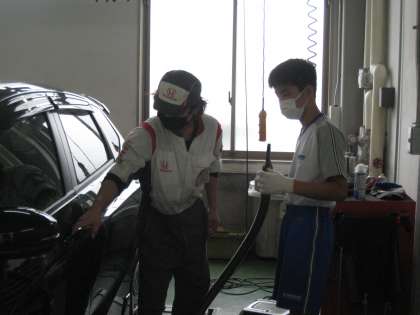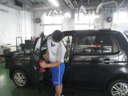お客様の車の掃除や車検の立ち合い、オイル交換をしています。