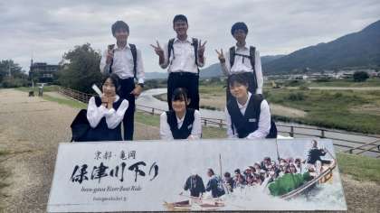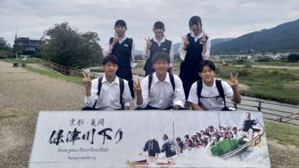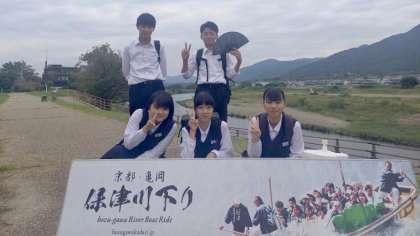 3年・修学旅行・1日目・その12 公開日 2022/09/27 更新日 2022/09/27 3学年 9月27日(火) 12:35 3年6組は、保津川下りを体験します。 体験前に、各班で「ハイポーズ!」