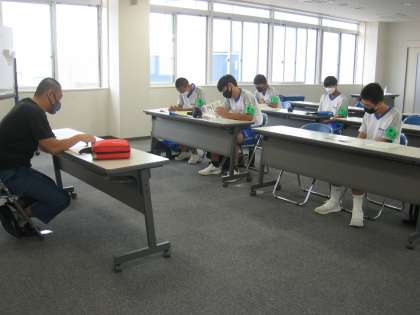 2年・14歳の挑戦・1日目・その9 公開日 2022/09/27 更新日 2022/09/27 2学年 9月27日(火) 13:00 「社会に学ぶ『14歳の挑戦』」の活動を紹介します。 「富山消防署東部出張所」での活動のようすです。 心肺蘇生について説明を受けています。 人の命に関わる大変なお仕事です。 真剣な表情で説明を受けています。