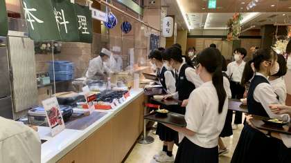 夕食会場でバイキングです!
