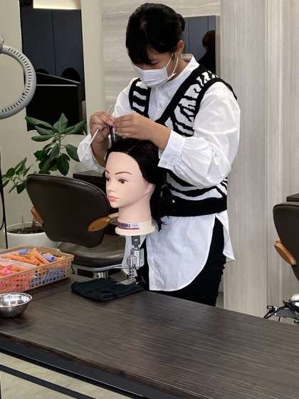 マネキンを使用し、パーマをかける際のヘアーセットからカール巻き等をしています。