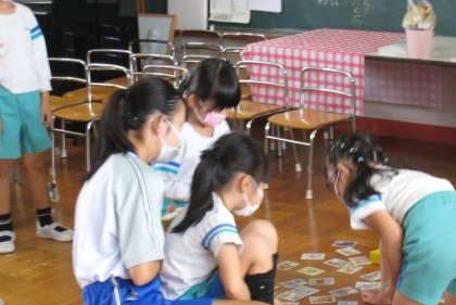 2日目で中学生に慣れた園児が次から次へと話かけています。