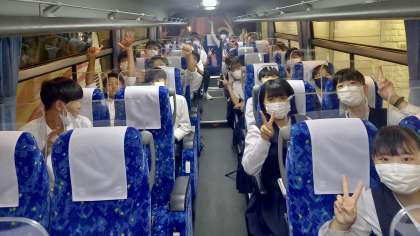 朝食の後、京都班別学習に向けてそれぞれの目的地別にバスに乗ります。