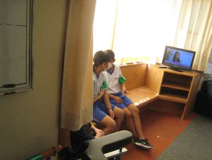 お昼過ぎ、利用者さんとテレビを見ながらお話しています。
