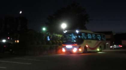 3年・修学旅行・3日目・その16 公開日 2022/09/29 更新日 2022/09/29 3学年 ▲南東の空にきれいな三日月がお出迎えしてくれました! 9月29日(木) 18:35 バスが続々と帰ってきました。(写真:下) 「おかえりなさ〜い!」