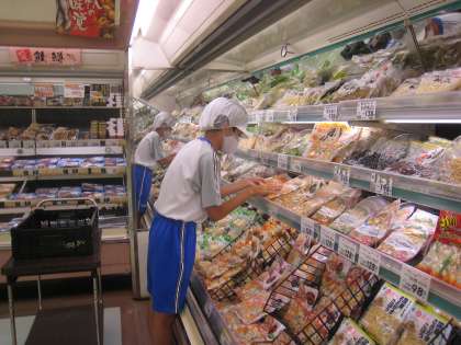 魚の切り身を数えたり、商品の消費期限のチェックをしています。