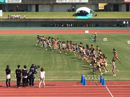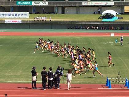 10月1日(土) 12:15 いよいよ女子がスタートしました! 頑張れ、山室中駅伝部!