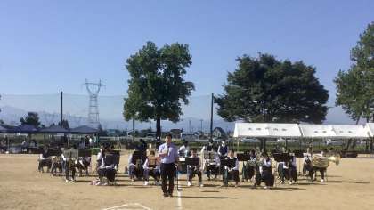 吹奏楽部は、太田小学校グラウンドで行われた「第75回 太田校下住民大運動会」に参加し、演奏を披露しました。