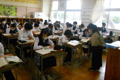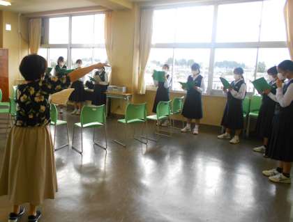 学活では、みんなで協力して1つの曲をつくる方法を考えています。