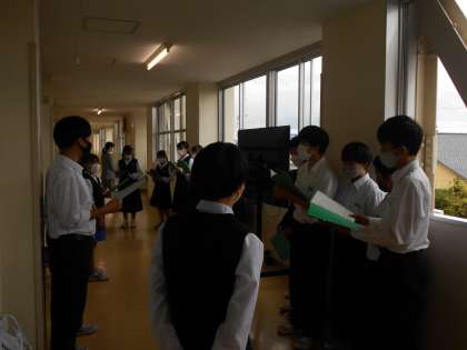 1年・合唱練習1日目・その1 公開日 2022/10/05 更新日 2022/10/05 1学年 10月5日(水) 14:40 今日から合唱練習がスタートしました。 合唱リーダーは、練習時間の30分を有効に使おうと、事前に入念な打ち合わせをして引っ張っていました。 (写真 上:1年1組 中:1年2組 下;1年5組)