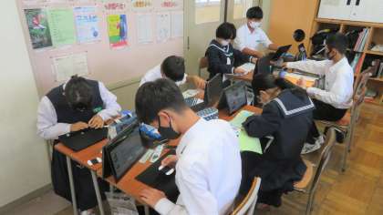 1年・授業風景 公開日 2022/10/06 更新日 2022/10/06 1学年 10月6日(木) 2限 気温は17度、天気はくもり、秋らしい天気になりました。 (季節が少し進んだ感じがしますね。) 来週から、「第2回 定期考査」が始まります。 学習への集中力が問われますね! (写真 上:1年1組 英語の授業) (写真 中、下:1年5組 家庭科の授業 スナップ、ボタン付けに挑戦しています!)