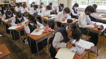 (写真 中:2年5組 理科・ワークやカラープリント)