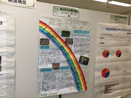 県中学校文化祭・その1 公開日 2022/10/09 更新日 2022/10/09 山室中学校のページ 10月9日(日) 11:00 高岡文化ホールでは、富山県中学校文化祭を開催しています。 ステージ発表、発表会、展示発表があります。 山室中学校からは、美術、書道、特別展示、新聞・文芸部門に出品しました。 どれも力作揃いです! (写真 上:書道 中:特別展示 下:新聞)