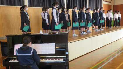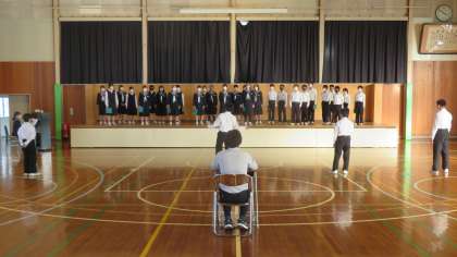 放課後合唱練習【1年・特別教室編】 公開日 2022/10/13 更新日 2022/10/13 1学年 10月13日(木) 15:30 定期考査が終わり、放課後合唱練習にも気合いが入ってきました。 特別教室での練習が割り振られた1年4組の練習場所は、体育館です。 合唱リーダーの的確な指示が出ています!
