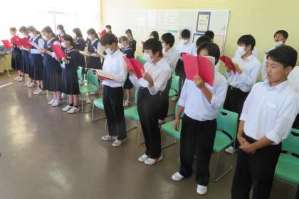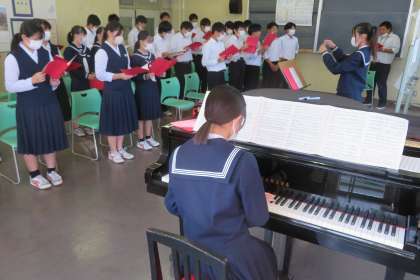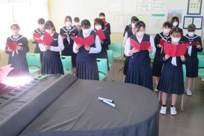 放課後合唱練習【3年・特別教室編】 公開日 2022/10/13 更新日 2022/10/13 3学年 10月13日(木) 15:30 定期考査が終わり、放課後合唱練習にも気合いが入ってきました。 特別教室での練習が割り振られた3年6組の練習場所は、第2音楽室です。 クラスのハーモニーの色が少しずつ出ています!