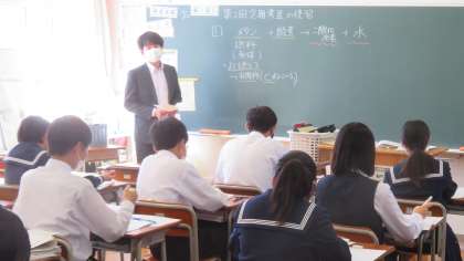 (写真 上:2年3組 理科「定期考査の解説」)