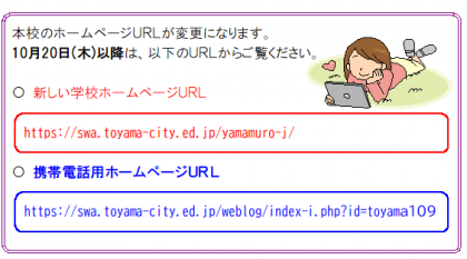 また、一時停止後は山室中ホームページのURLが変更されますので、併せて案内いたします。