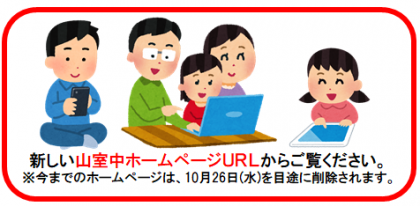 ※ 以前のURLからも山室中ホームページを閲覧することができますが、10月26日(水)を目途に削除されます。