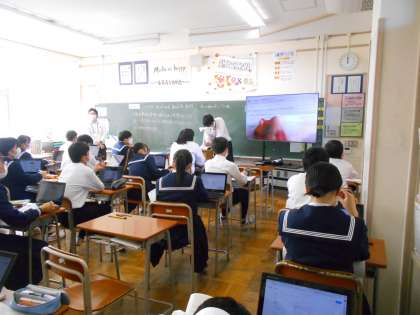 (写真 下:3年4組 英語)