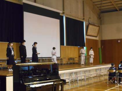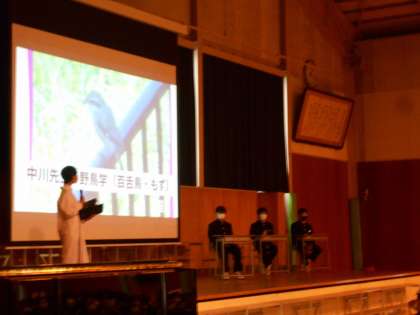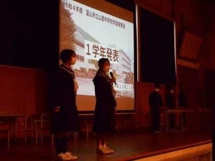 1年・ステージ発表 公開日 2022/10/22 更新日 2022/10/22 1学年 10月22日(土) 5限 学習発表会のステージ発表で、1年生は、総合的な学習の時間に進めてきた「自己開示フェスティバル」について発表しました。 これからも、自分の得意なことに向き合い、真剣に進路について考えていきたいです。