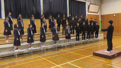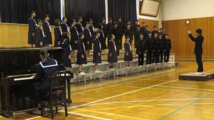2年・最優秀賞を受賞した2年5組が、「地球星歌〜笑顔のために〜」を披露しました。