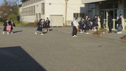 生徒が続々と元気に登校しています。(写真)