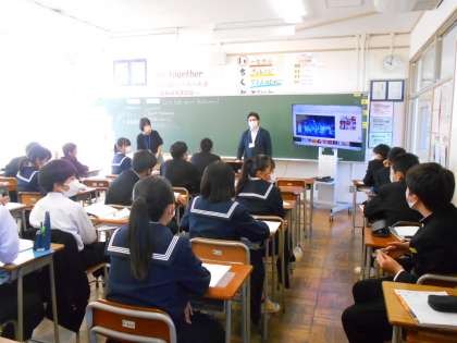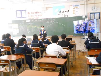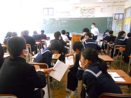 2年・授業風景 公開日 2022/10/28 更新日 2022/10/28 2学年 10月28日(金) 2限 英語では、ハローウィンについて話し合っています。 楽しそうですね! (写真 上:2年1組) 家庭科では、家のはたらきを考えています。 「家にはどんな部屋がありますか?」 (写真 中:2年3組) 数学では、五角形の内角の和について、ペアで説明し合っています。 相手に説明することで、より理解が深まりますね。 (写真 下:2年4組)