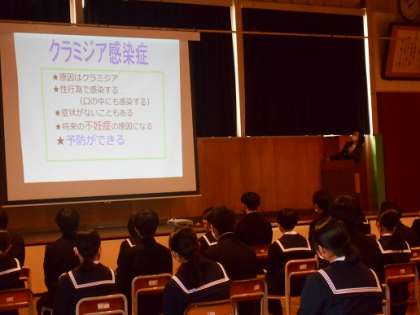 2年・産婦人科医による講話 公開日 2022/11/02 更新日 2022/11/02 2学年 11月2日(水)5限 2年生は、県立中央病院の産婦人科部長飴谷先生をお迎えし、「見つめよう、命!〜今、私たちに大切なこと〜」という演題でご講演いただきました。 男女の特性や悩み、性のトラブル等を知り、思春期の体の変化について理解を深めました。