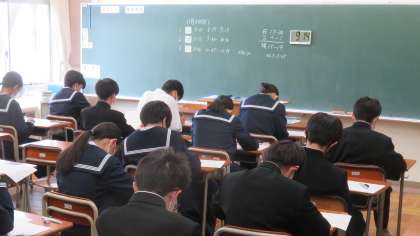 1年・中教研学力調査・1日目 公開日 2022/11/08 更新日 2022/11/08 1学年 11月8日(火) 1限 国語 今日から、中教研学力調査です。 (1限:国語、2限:理科、3限:英語) (写真 上:1年1組 中:1年3組 下:1年5組) 明日は、社会と数学です!