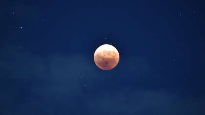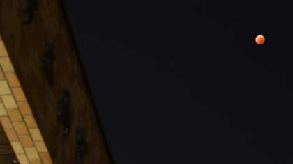 皆既食が始まり、肉眼では「赤銅色(しゃくどういろ)」と呼ばれる、赤黒い色に見えます。