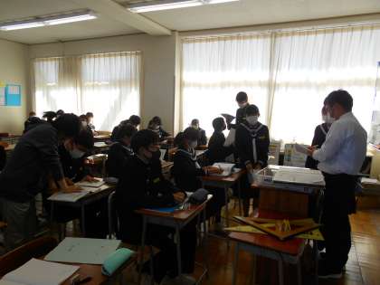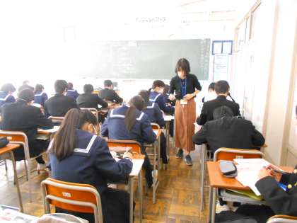 2年・授業風景 公開日 2022/11/09 更新日 2022/11/09 2学年 11月9日(水) 4限 数学では、問題を解いた後、先生にチェックをしてもらっています。 (写真 上:2年1組) 英語では、本文を読んで内容の概要を把握する練習をしています。 (写真 中:2年2組) 体育では、バスケットボールのゲームをしています。 徐々にボールがつながるようになってきました。 (写真 下:2年3組)
