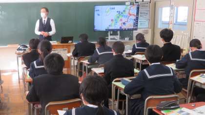 (写真 上:2年3組 社会「中部地方の自然環境」)